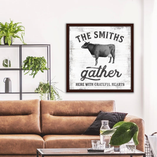 Gather Here With Grateful Hearts Personalized Name Sign