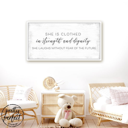 Save 30% NowShe Is Clothed In Strength and Dignity Sign