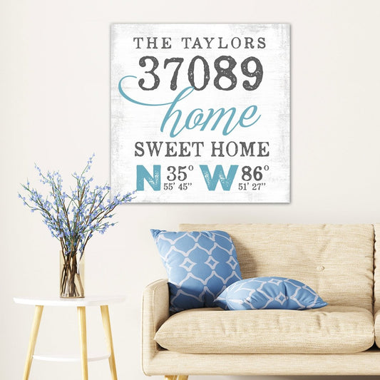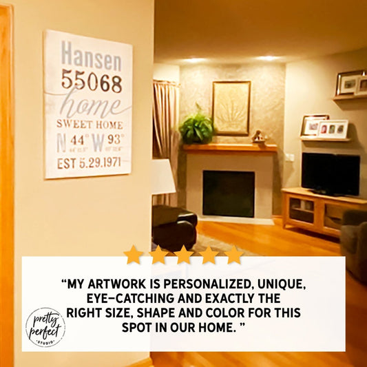 Our First Home Sign Personalized with Coordinates, Name & Est. Date