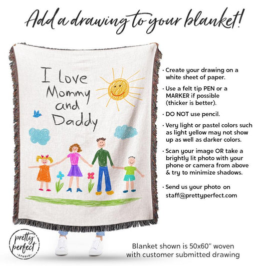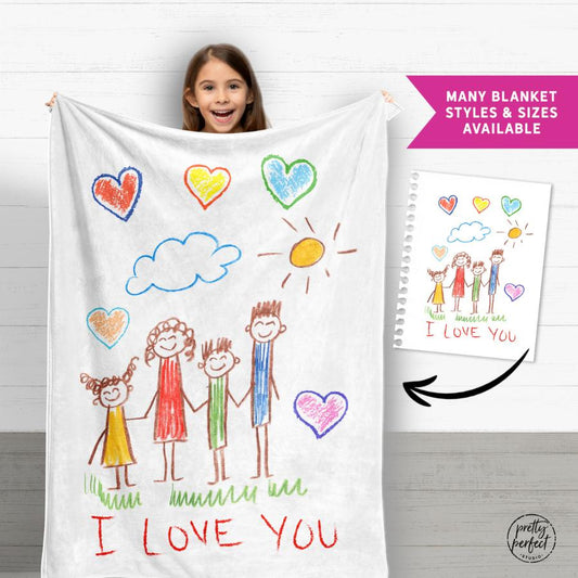 Personalized Kids Drawing Blanket, Christmas Gifts for Children or Grandma from Grandkids to Nana, Mimi