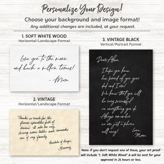Personalized Handwriting Sign of Loved Ones Actual Hand Written Note on Canvas