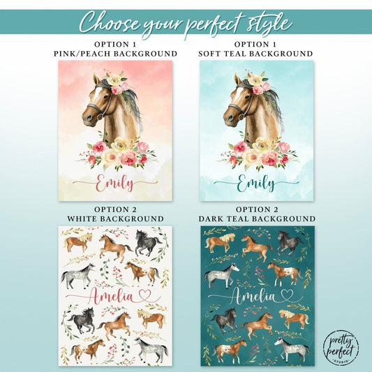 Personalized Horse Baby Blanket Gifts For Girls, Floral Horse Custom Baby Blanket