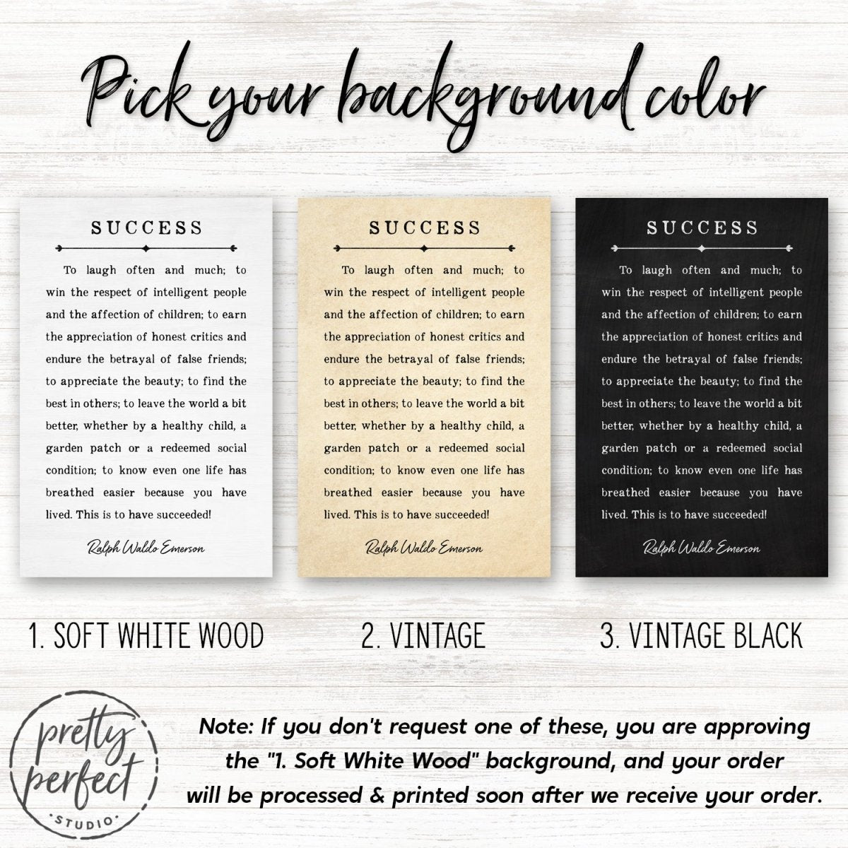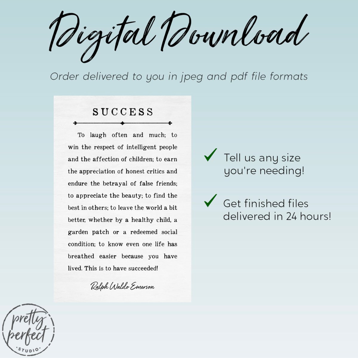 Be inspired daily by this "Success" quote by Ralph Waldo Emerson. This wall art is printed on premium quality canvas that's been professionally designed by Pretty Perfect Studio.