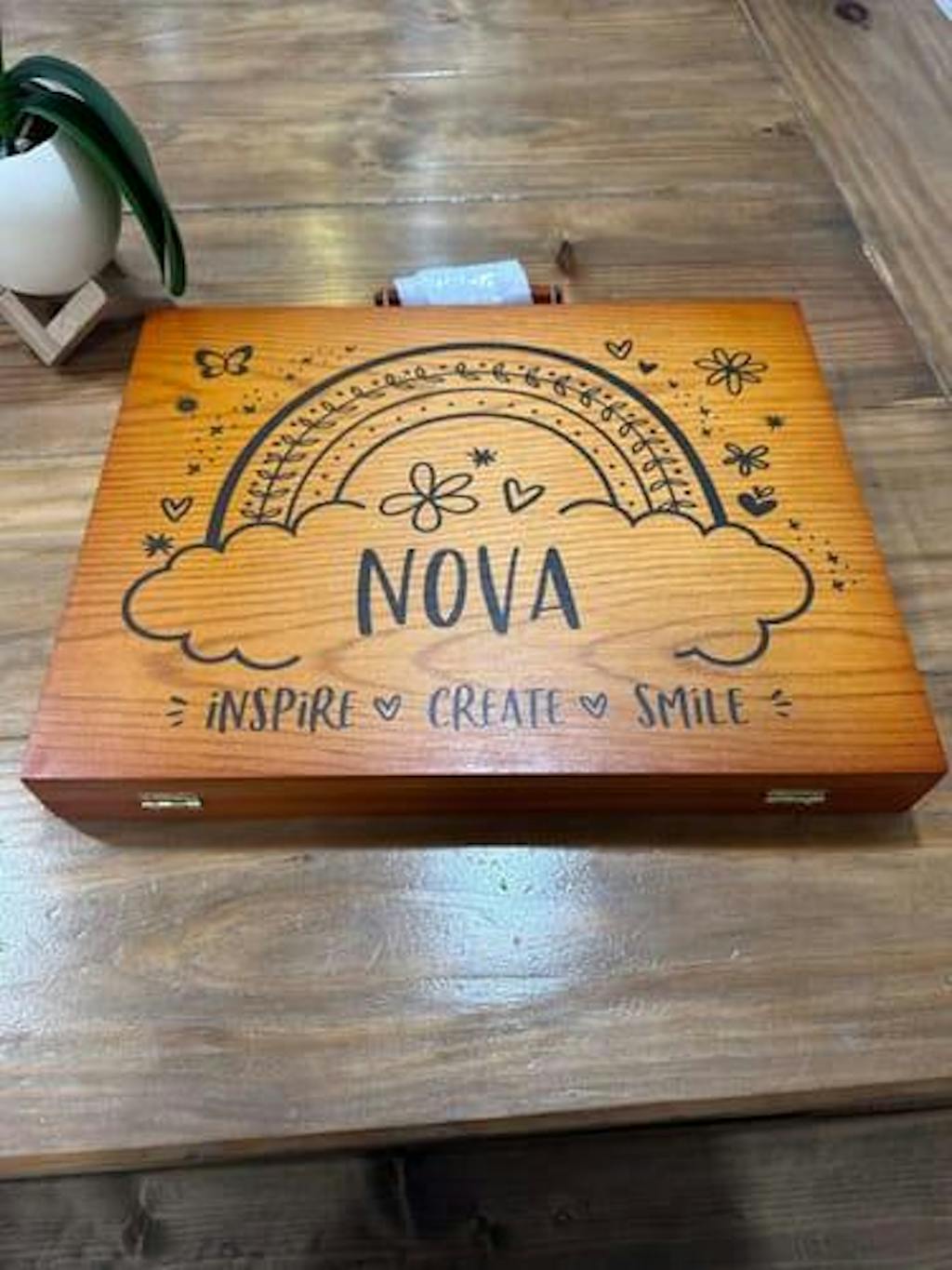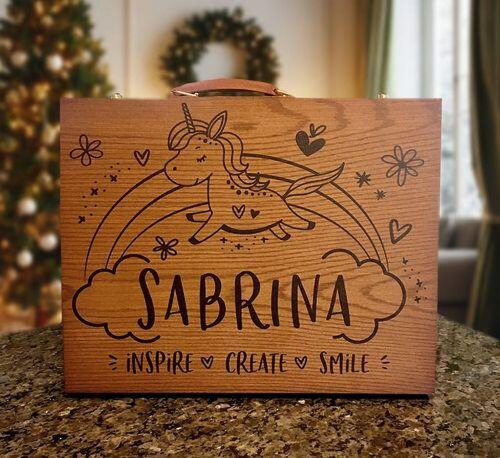 Personalized 150 piece young artist kit, all non-toxic, with the case professionally designed by Pretty Perfect Studio. Receive your art proof in 24 hours or less, to review & approve or request additional design changes before it's printed!