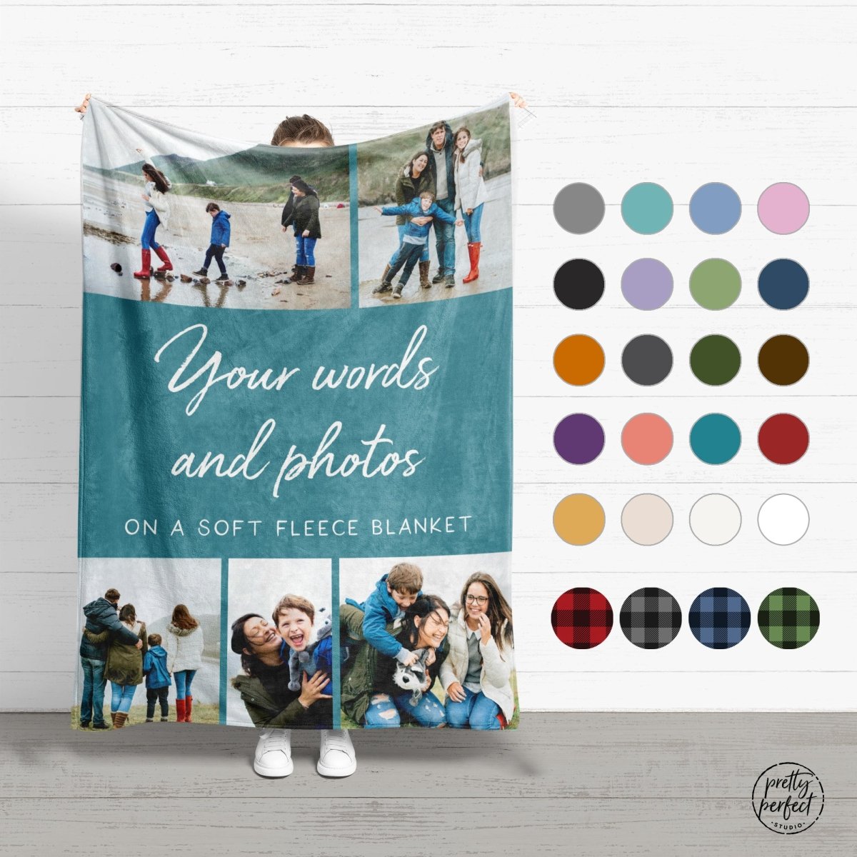 Custom Photo Collage Blanket for Adults and Kids, Personalized Picture Throw Blankets, Custom Text on Blanket