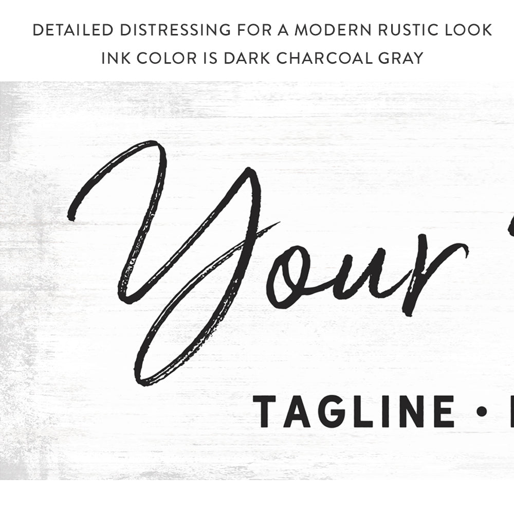 Personalized business with tagline signs on premium quality canvas, professionally designed by Pretty Perfect Studio. Receive your art proof in 24 hours or less!