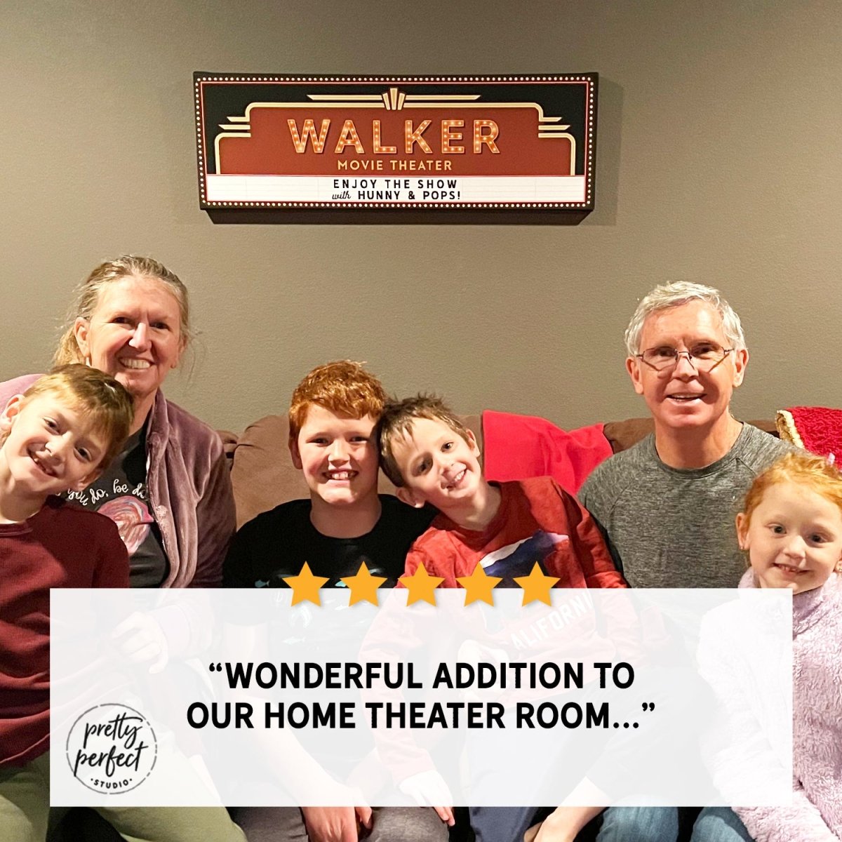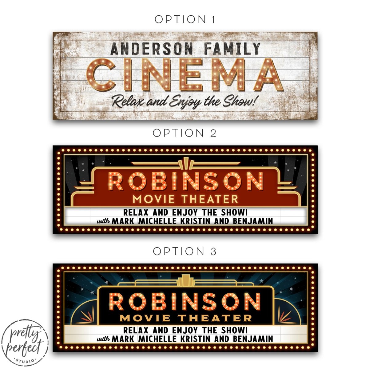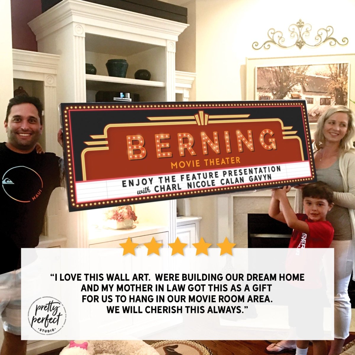 Your personalized family cinema marquee sign will become a timeless classic in your home theater room! Receive your art proof in 24 hours or less! Free Revisions until you're happy with the final design. Â