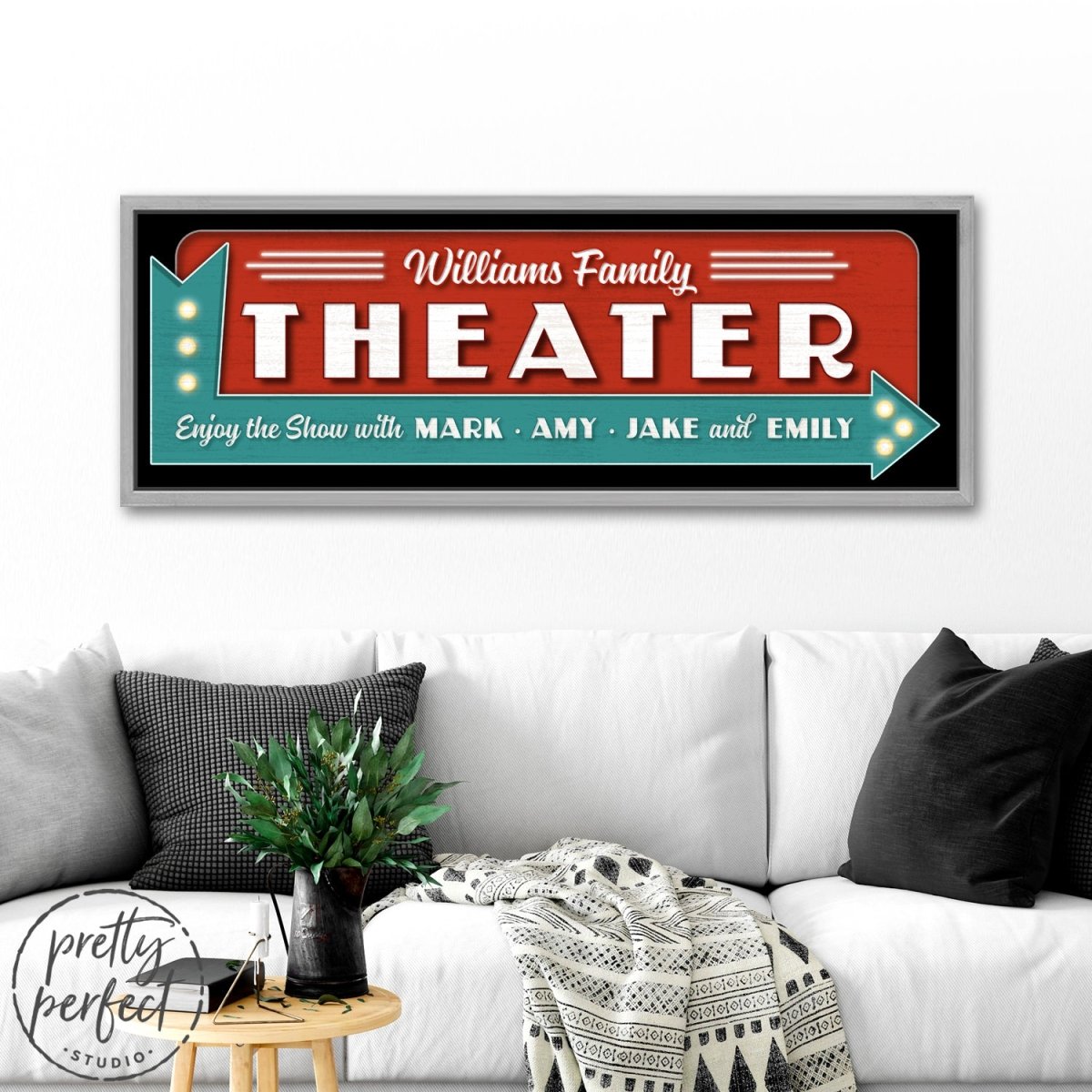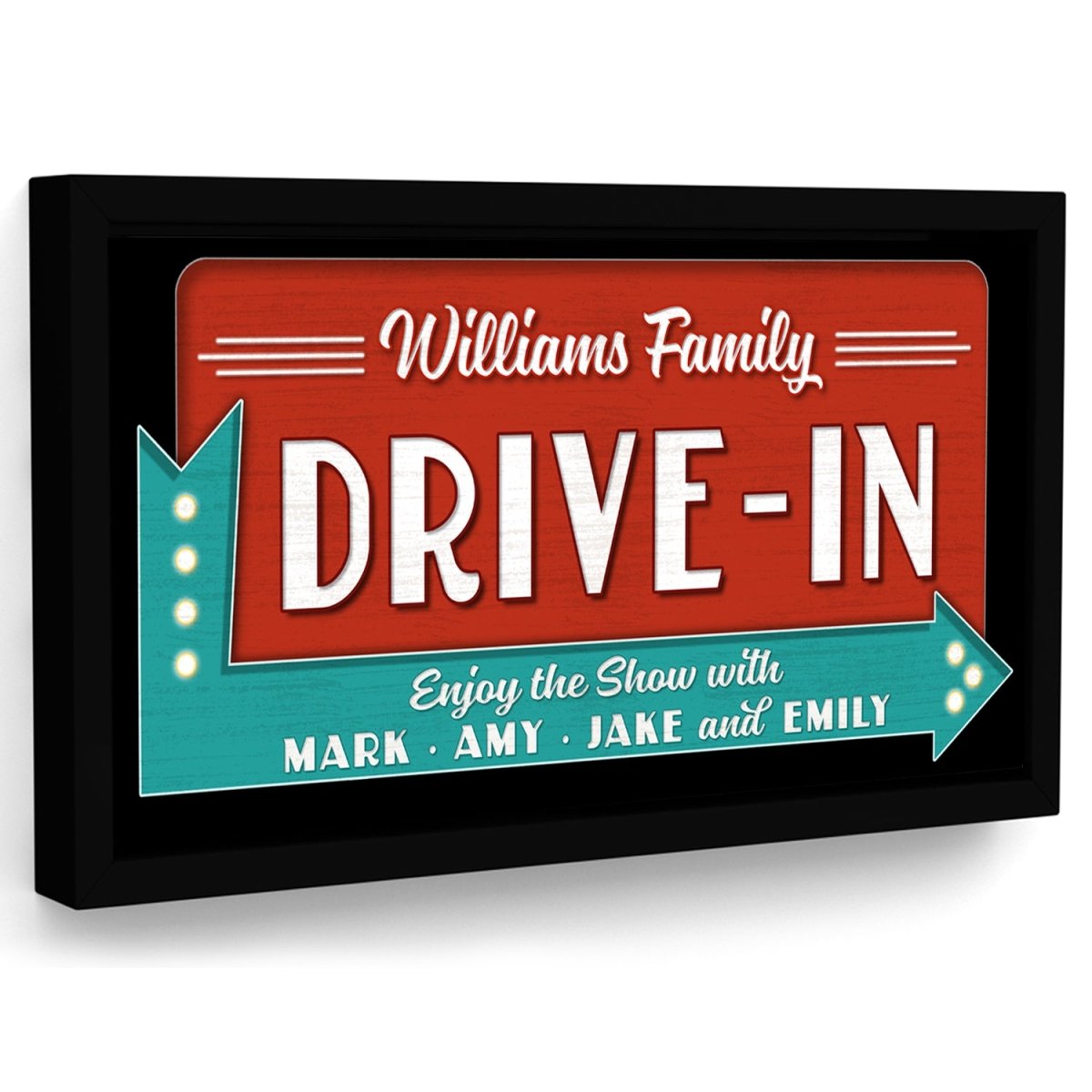 Personalized drive-in theater arrow signs on premium quality canvas wall art! Receive your art proof in 24 hours or less! Free Revisions until you're happy with the final design. Â