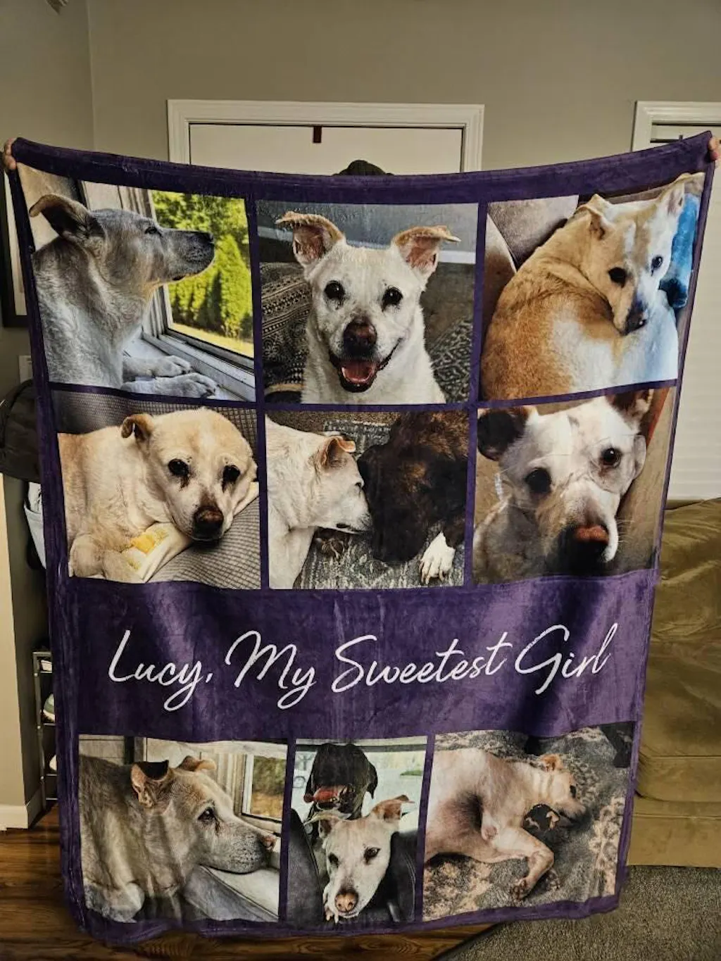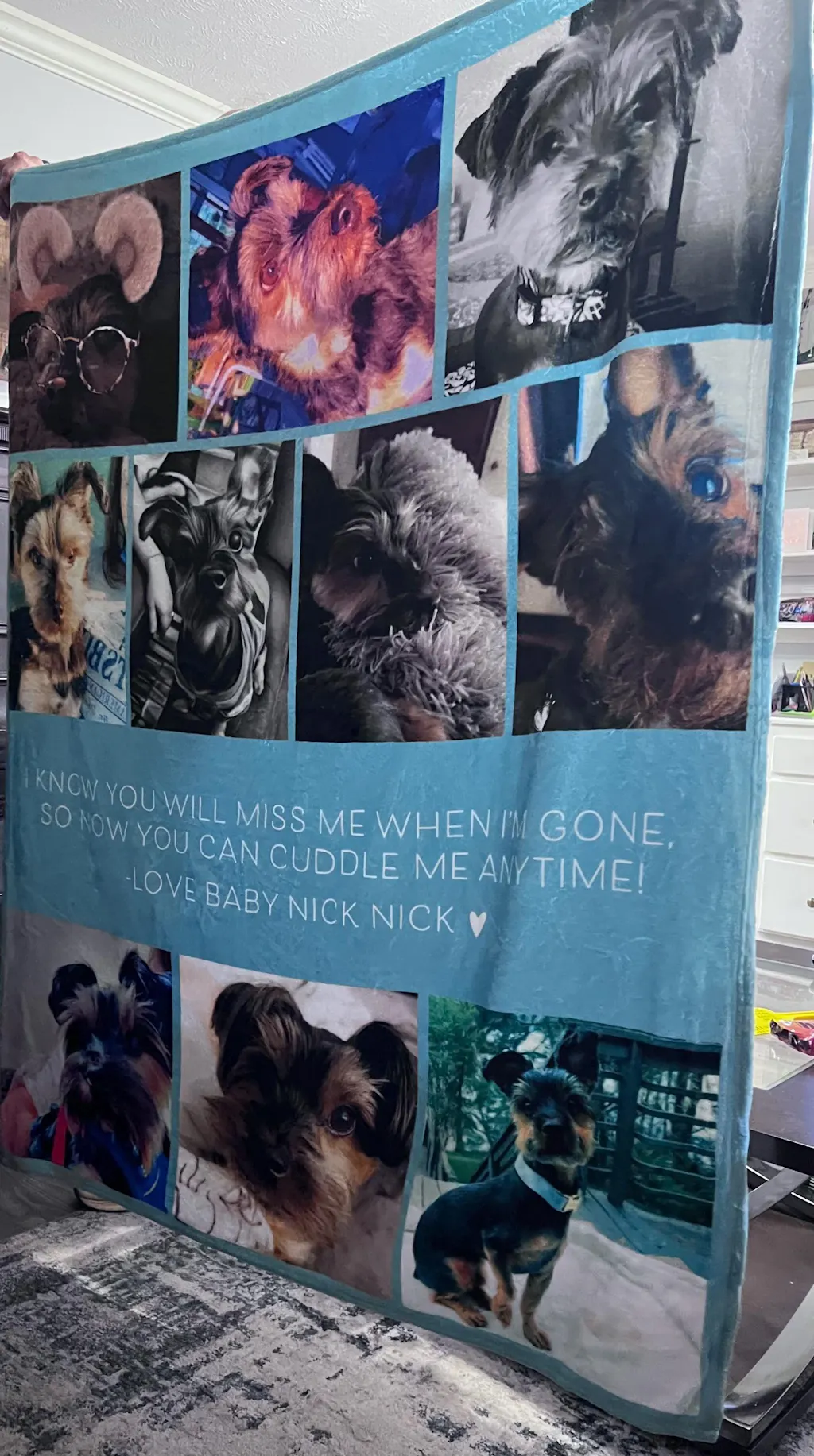 My dog memorial blanket turned out amazing!!! I cannot believe how clear the picutures are! There are no flaws in any of them! The weight of the blanket is perfect, not too thin, and is so soft. This company did not disappoint. Not only is their craftsmanship fantastic, their communication is wonderful too! They communicated with me so well and made sure the blanket was to my specifications before they completed it. My blanket is beautiful and I'm so thrilled with it!!!