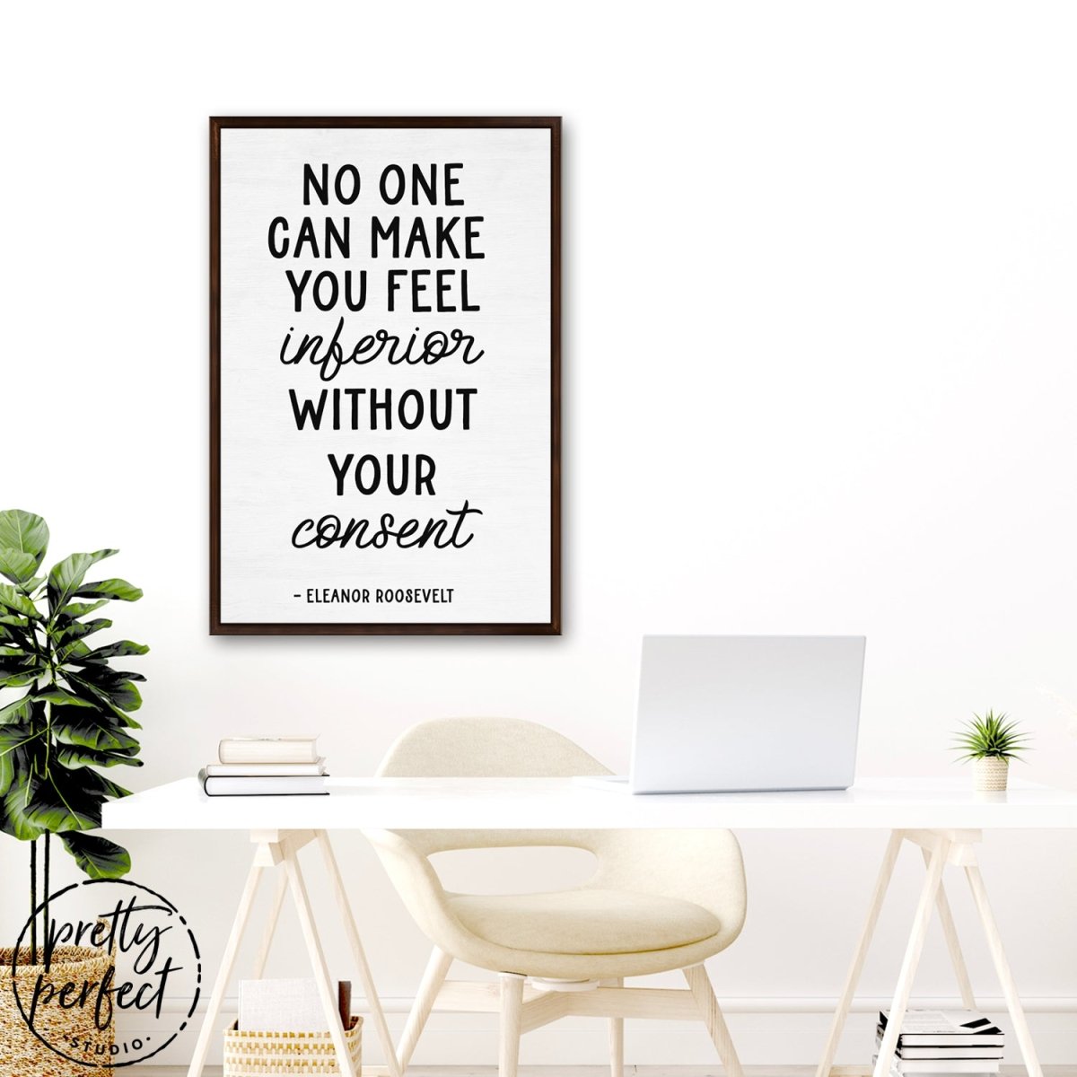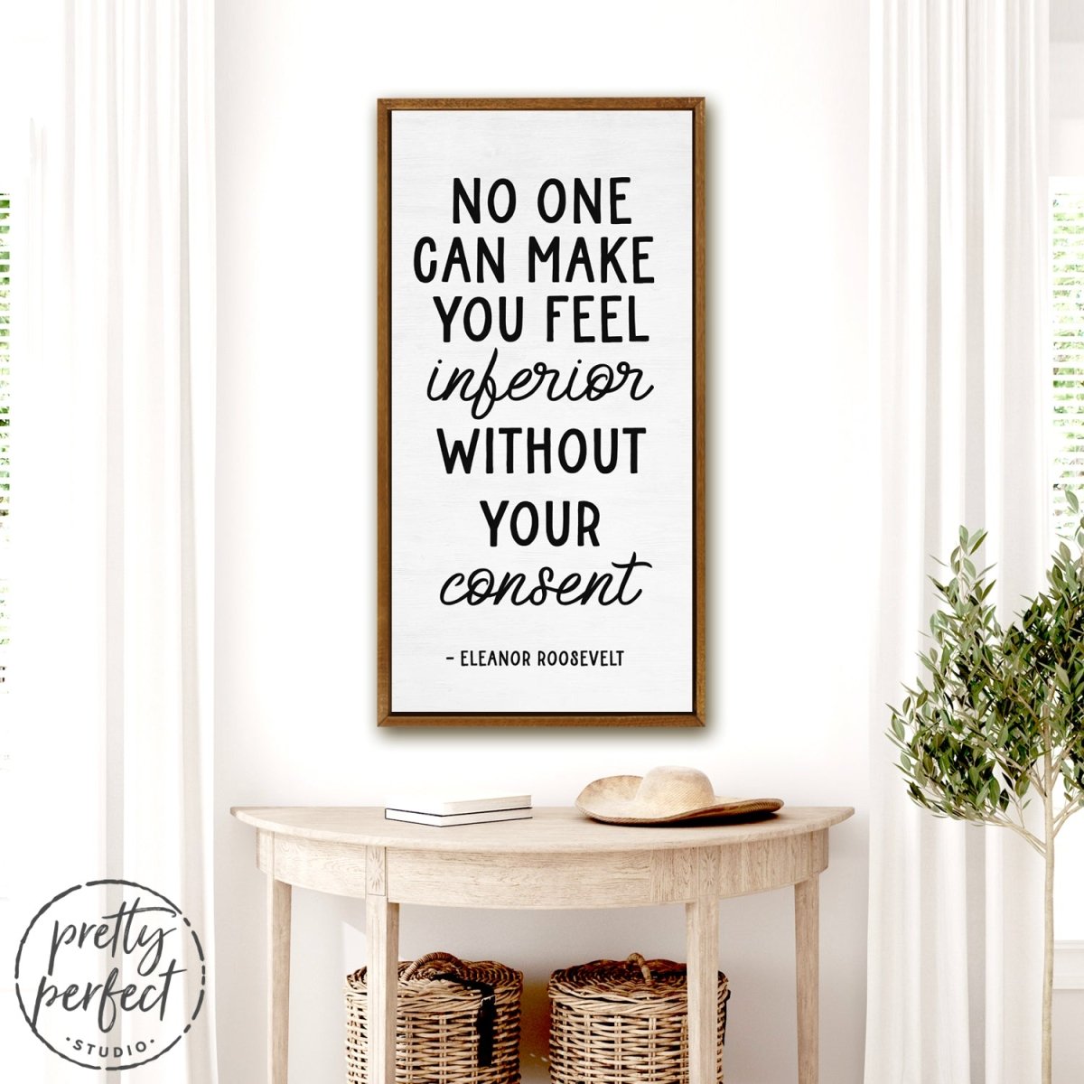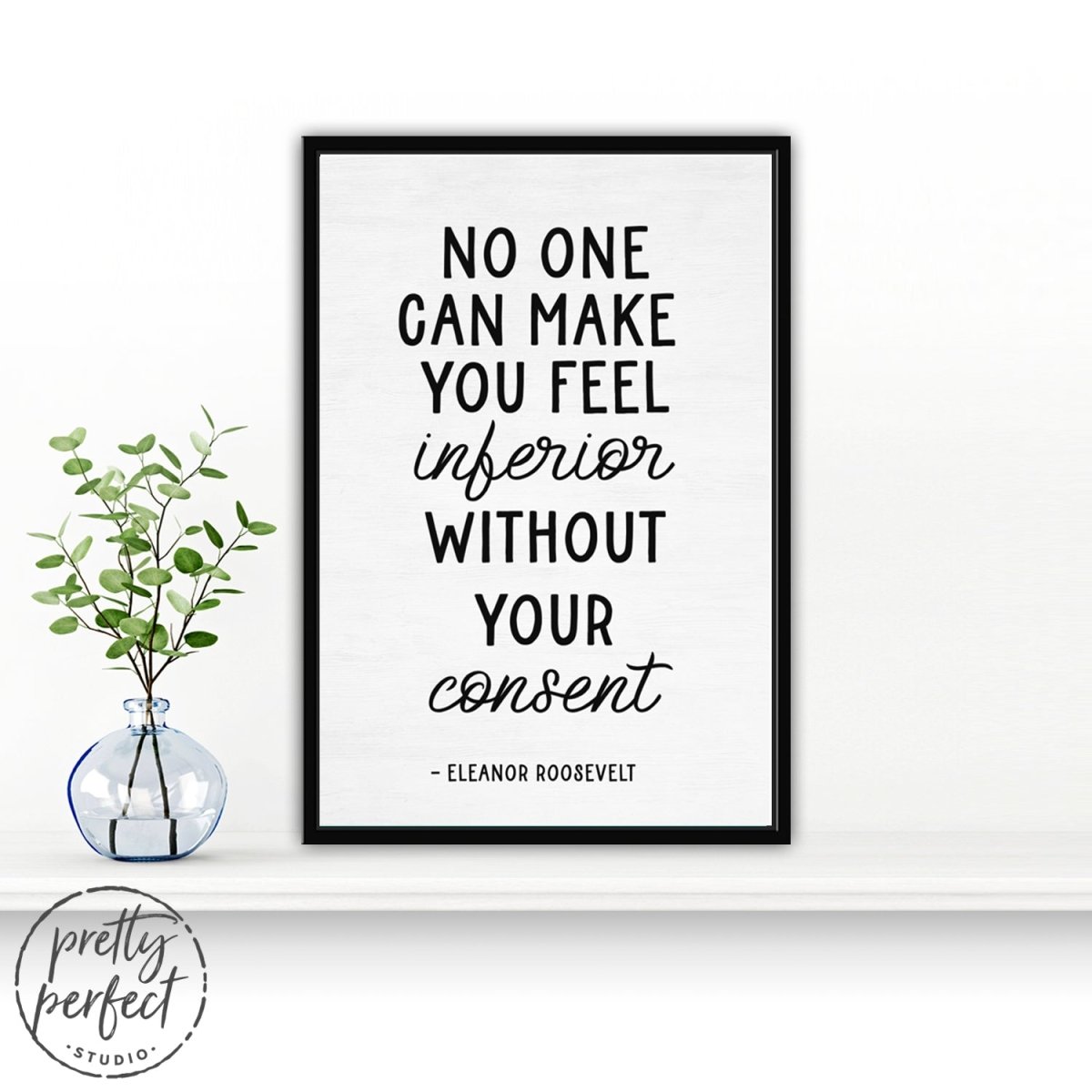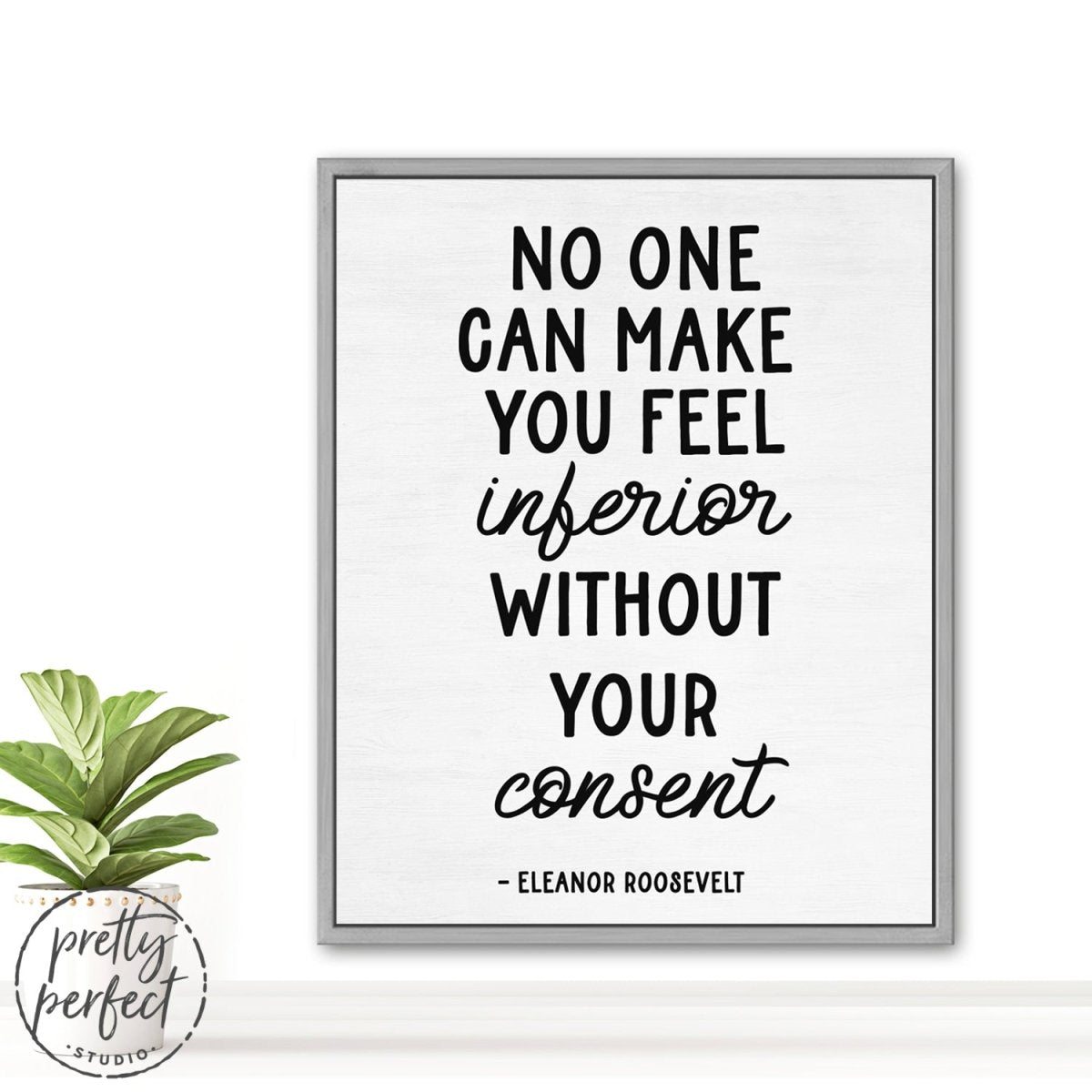 No one can make you feel inferior without your consent, is a famous quote by Eleanor Roosevelt that is printed on premium heirloom canvas wall art, professionally designed by Pretty Perfect Studio!