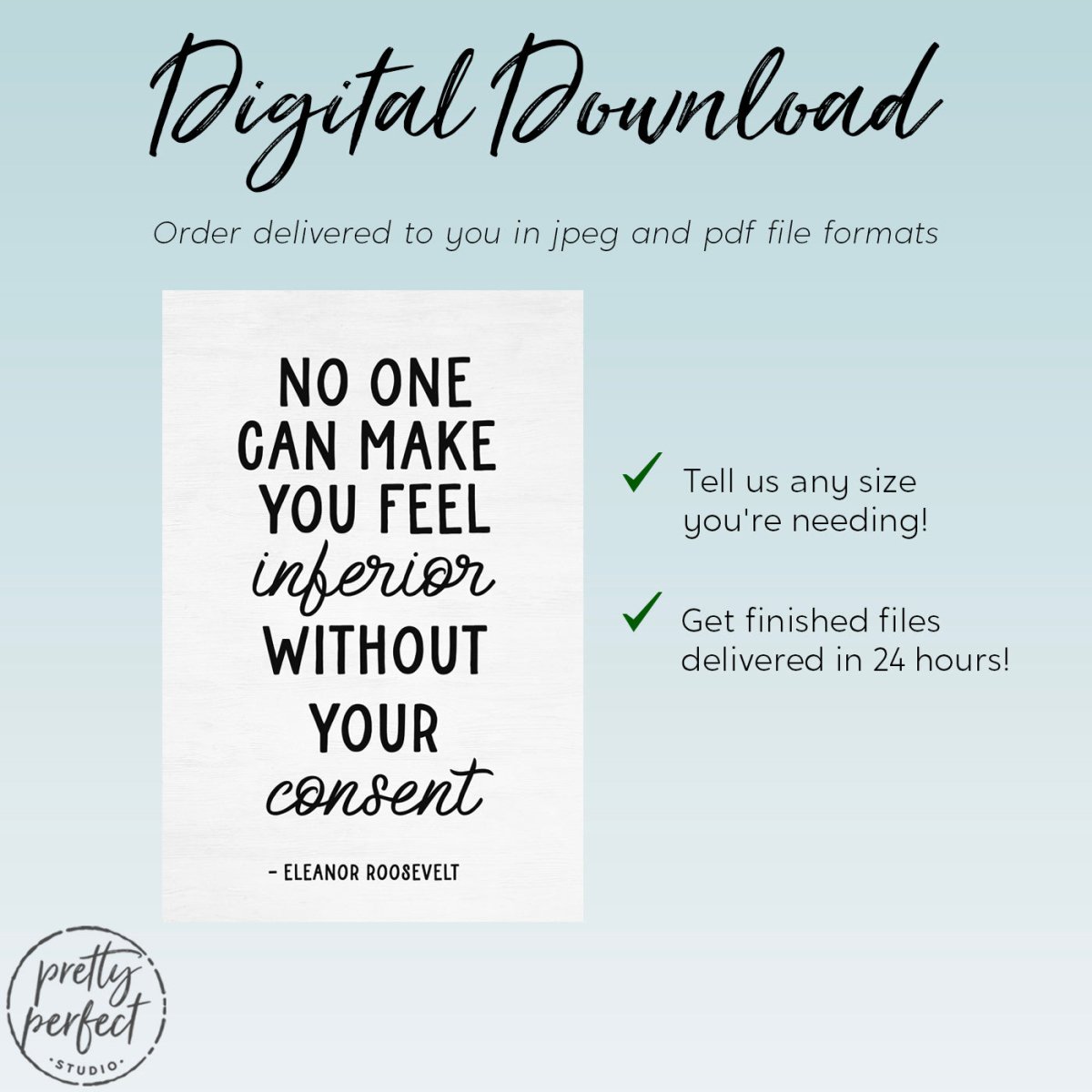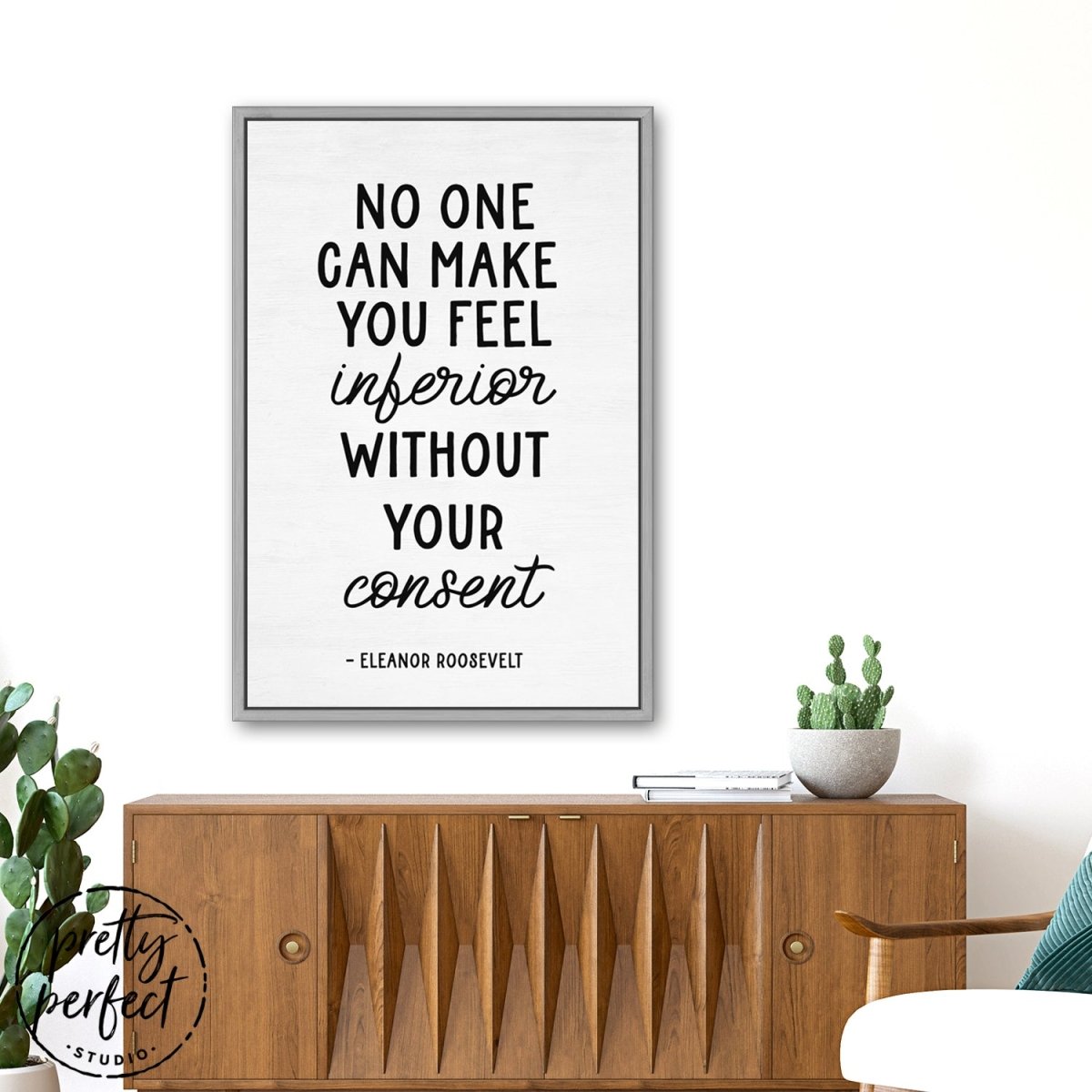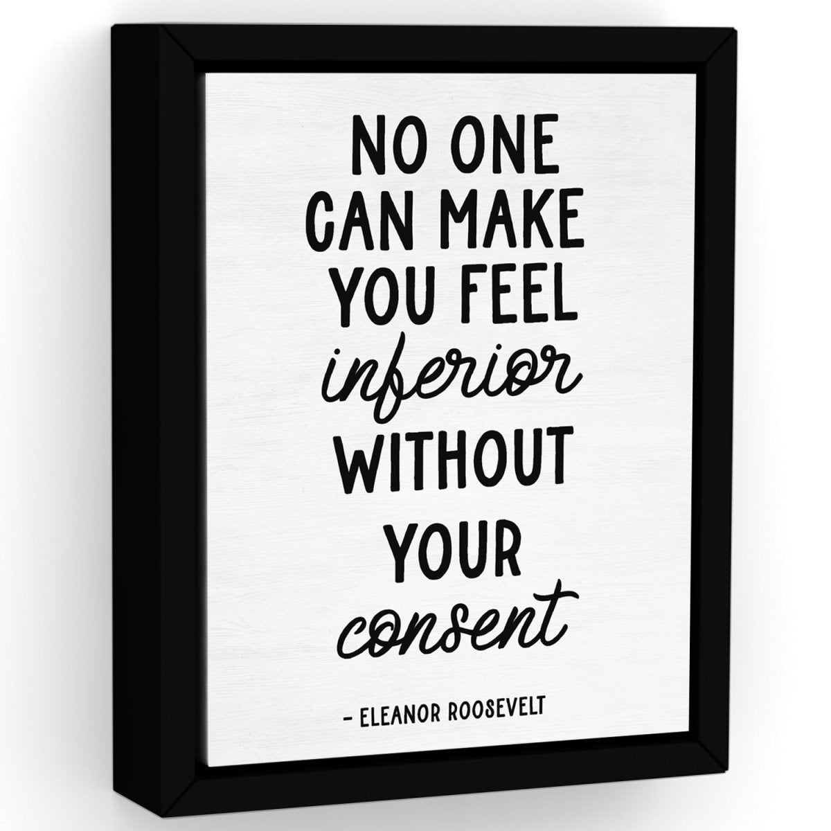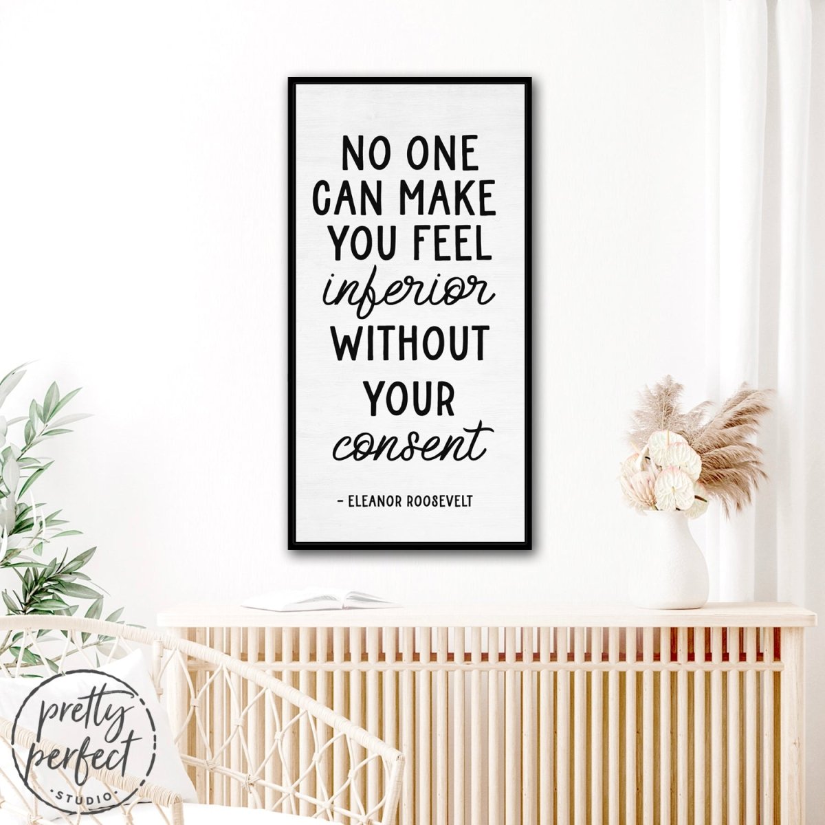 No one can make you feel inferior without your consent, is a famous quote by Eleanor Roosevelt that is printed on premium heirloom canvas wall art, professionally designed by Pretty Perfect Studio!