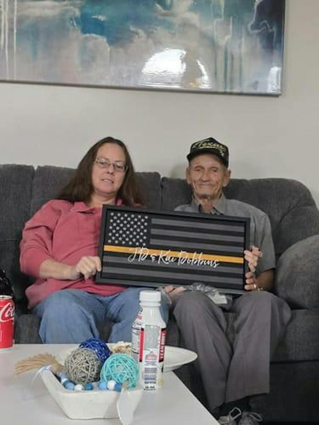 Flag Sign With Thin Gold Line For 911 Dispatchers & Tow Truck Drivers