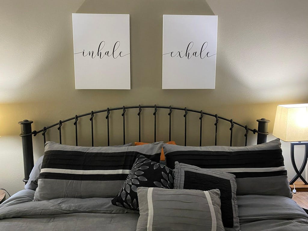 This Inhale Exhale Wall Art is a constant reminder to get you through the day. This canvas sign makes a great piece for the bedroom and living room.