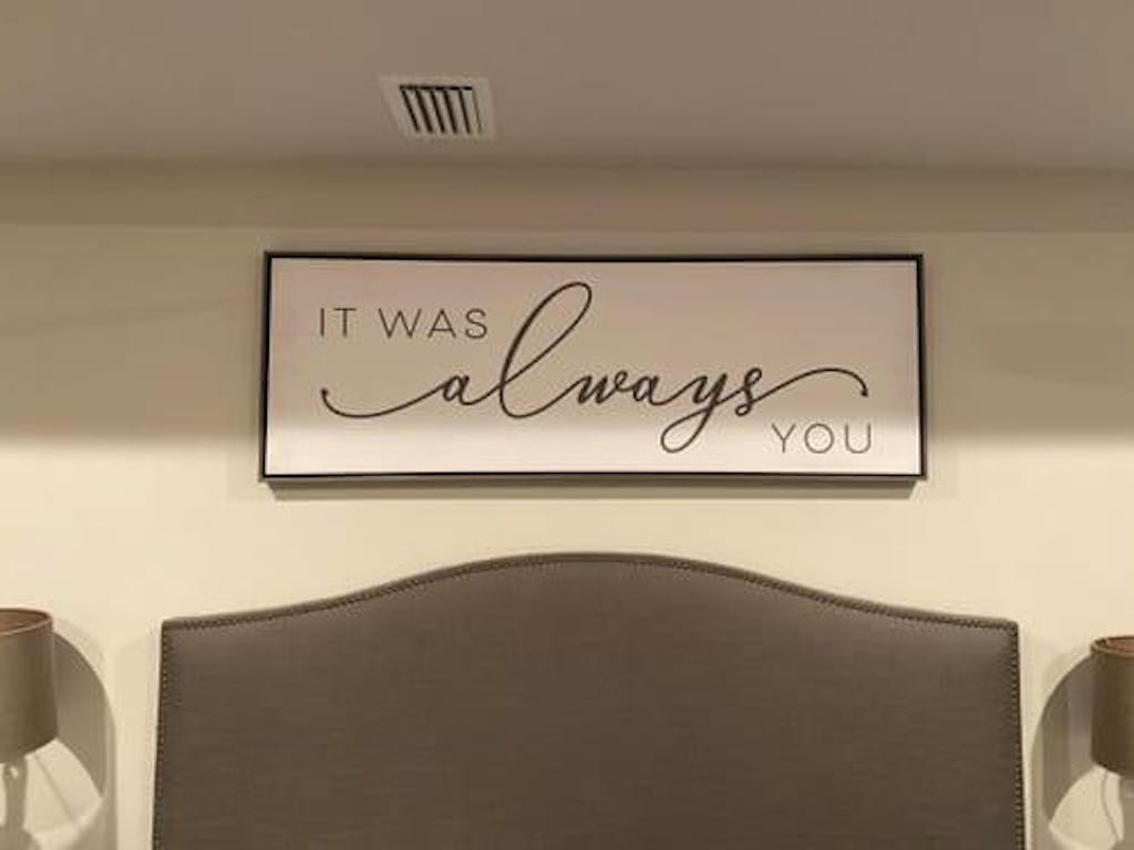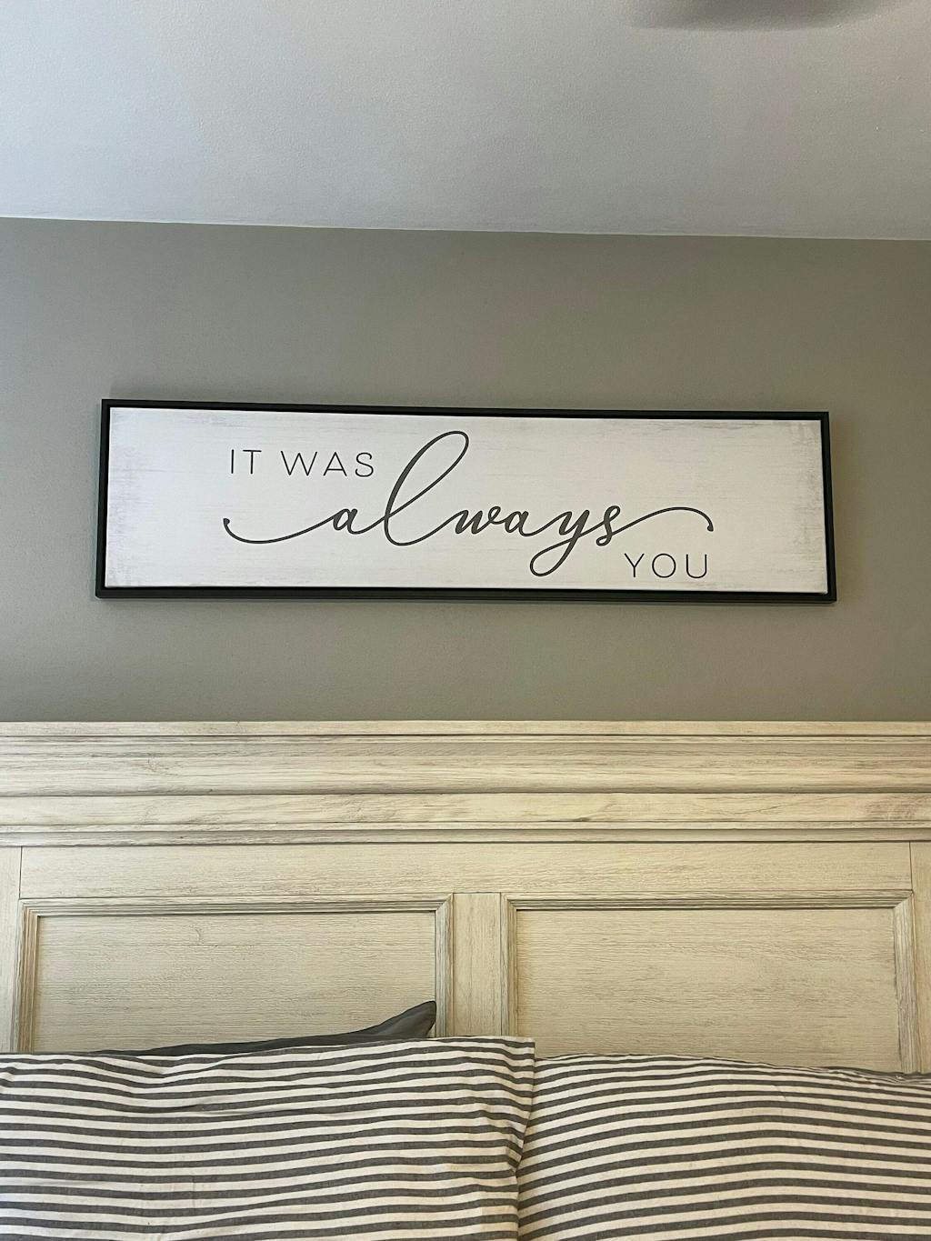It Was Always You Sign is an extra-large over-the-bed love quote sign that makes the perfect bedroom canvas wall art decor for couples. This canvas sign makes a great anniversary gift for that special someone.