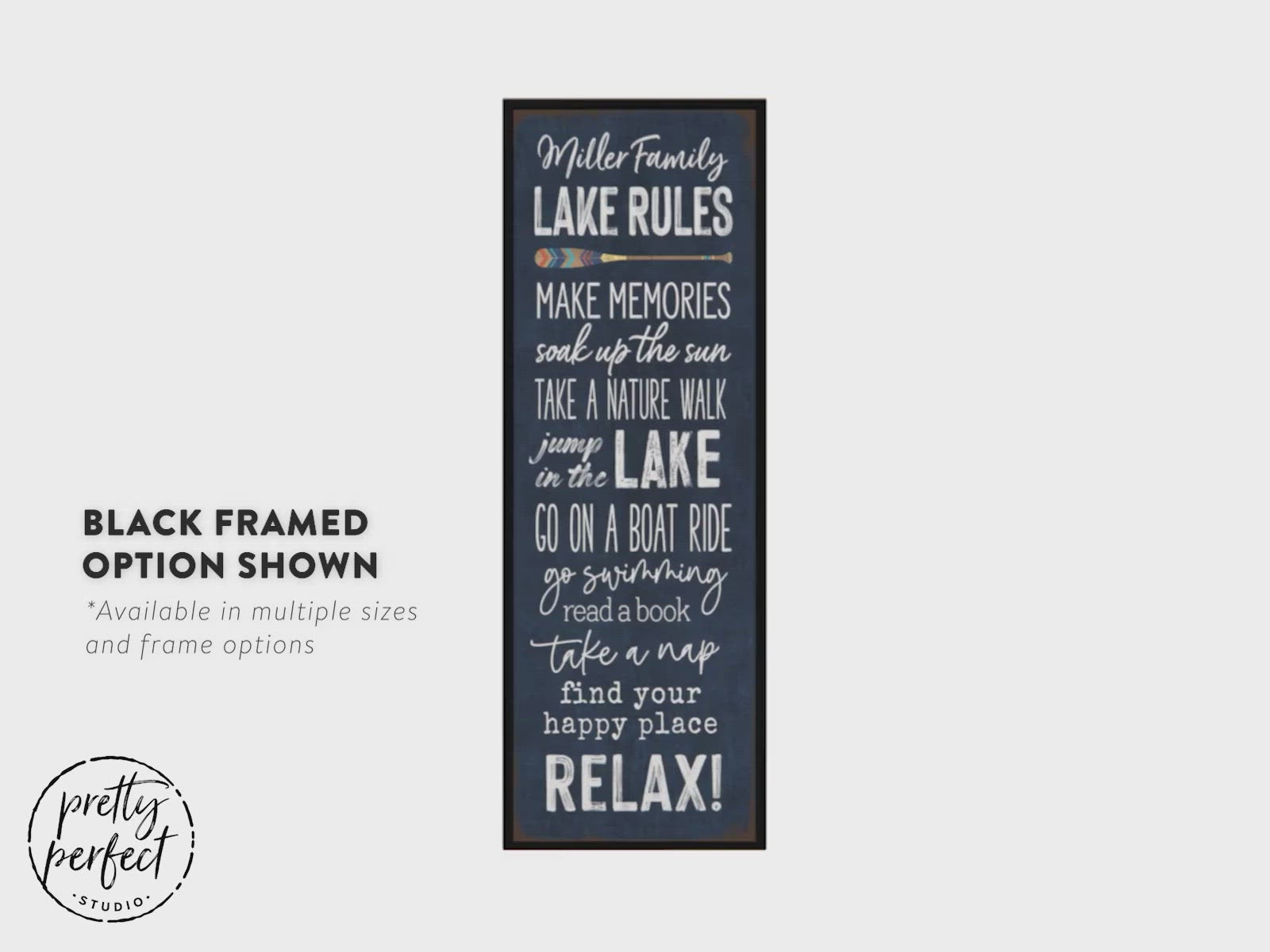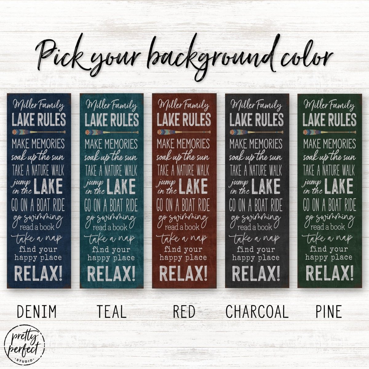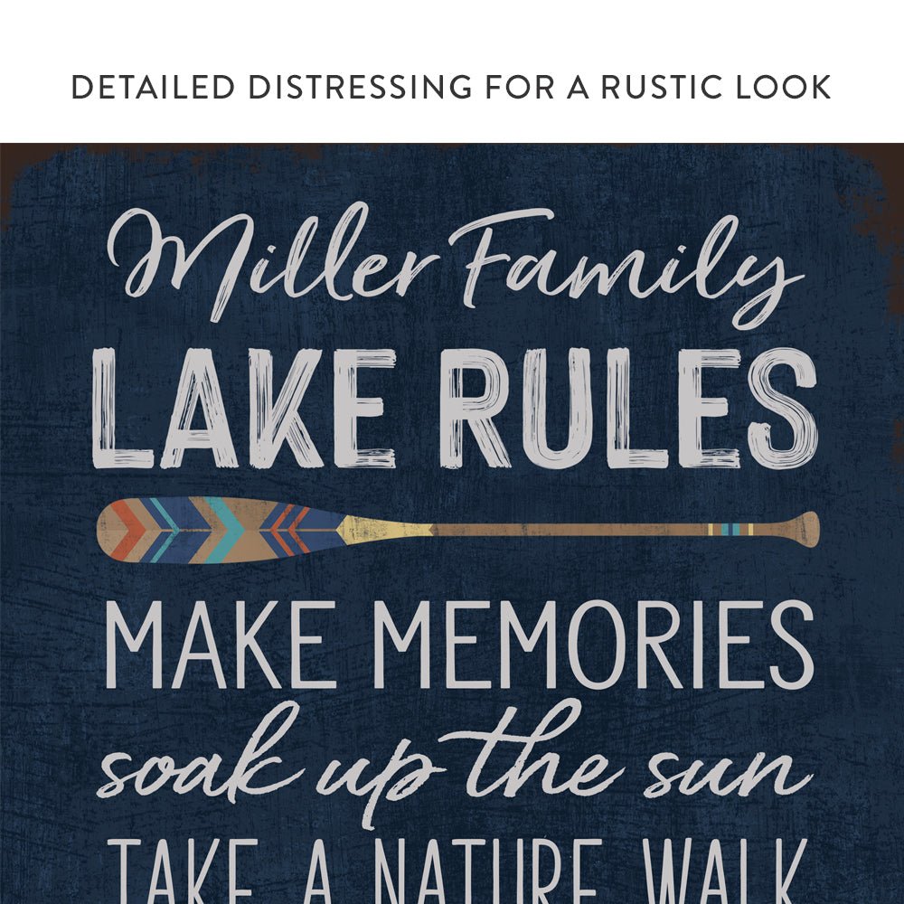 Personalize your family lake house rules sign on premium quality canvas wall art, professionally designed by Pretty Perfect Studio.  Receive your art proof in 24 hours or less! Free Revisions until you're happy with the final design. Â