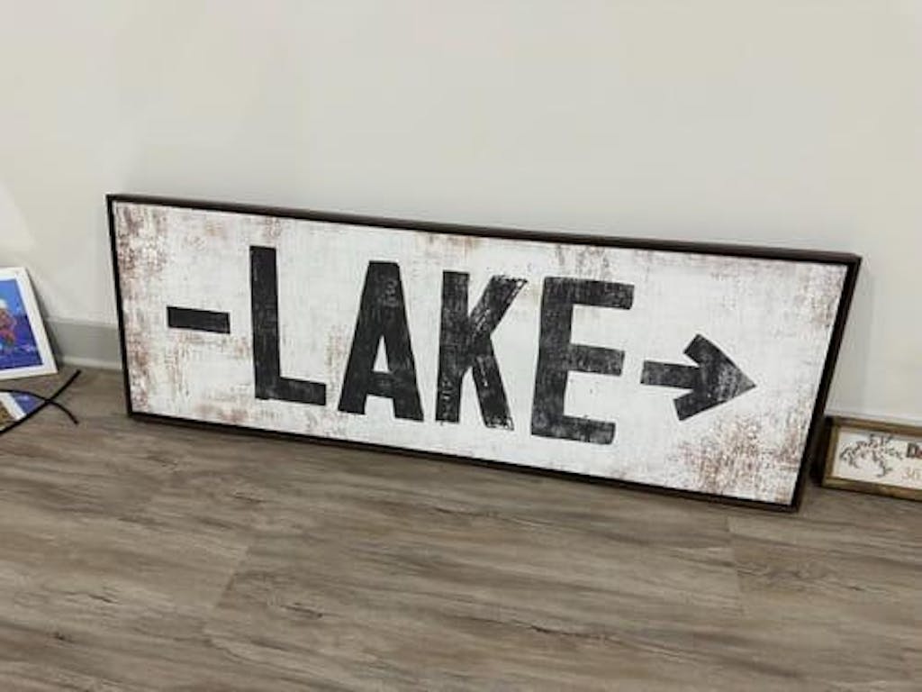 Personalize your lake arrow sign, with left or right lake arrows, on premium canvas wall art that's professionally designed by our design team. Receive your art proof in 24 hours or less! Free Revisions until you're happy with the final design.