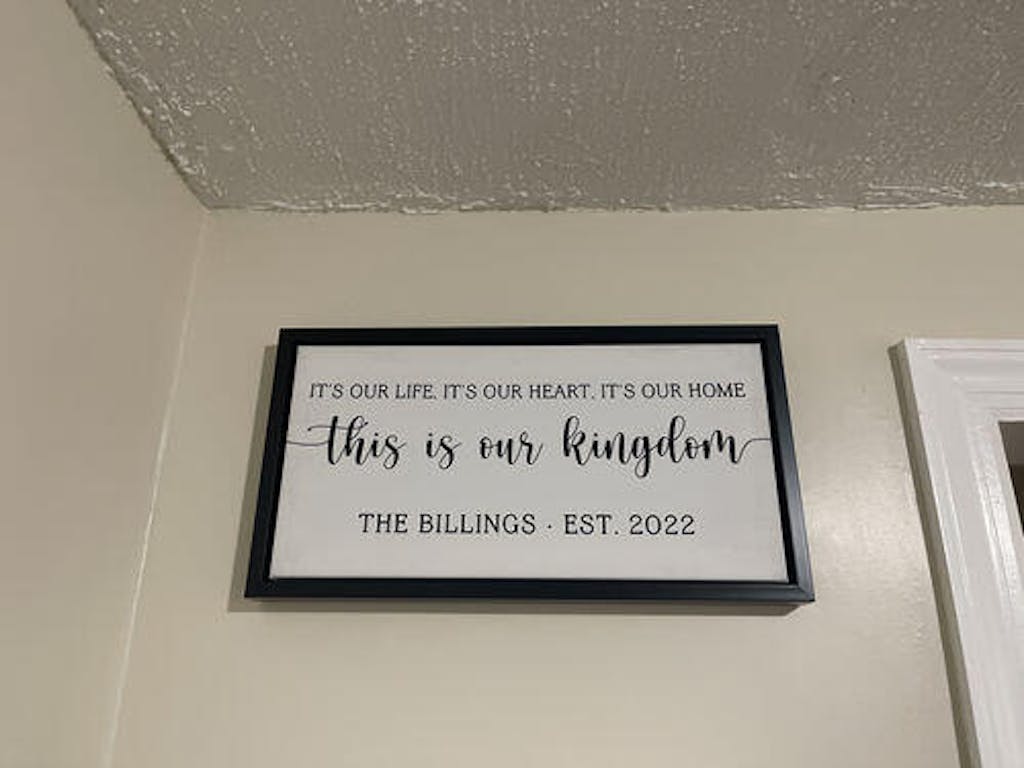 This piece came out exactly as we had hoped. Thank you! It's a quote from my husband's late wife, and the seller was able to use samples of her handwriting to put the quote in her handwriting. Communication was wonderful. Shipping and delivery were fast.