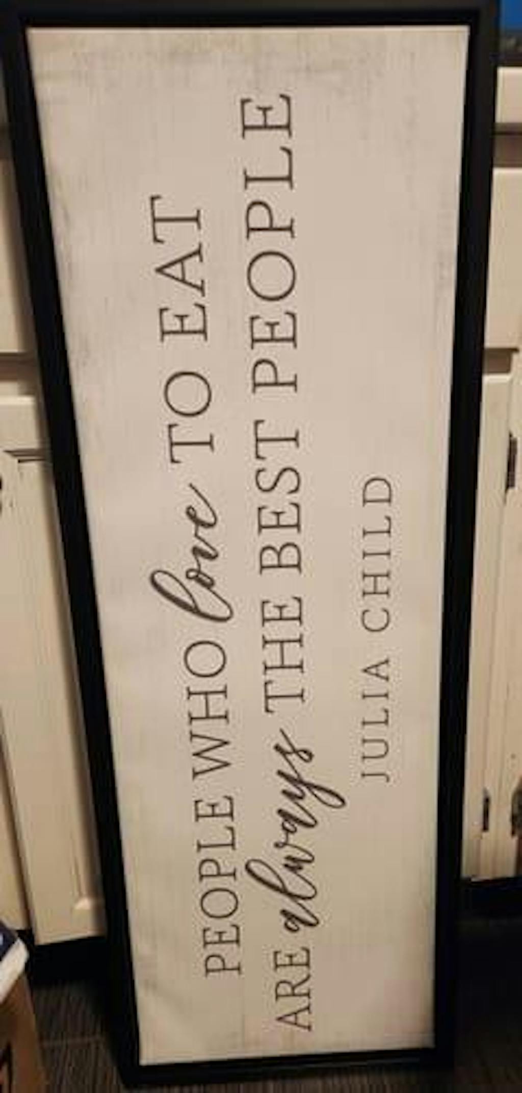 People Who Love to Eat Are Always the Best People sign was inspired by Julia Child. This canvas sign is a great addition to any kitchen or dining room. Make this a housewarming gift for a special person in your life.