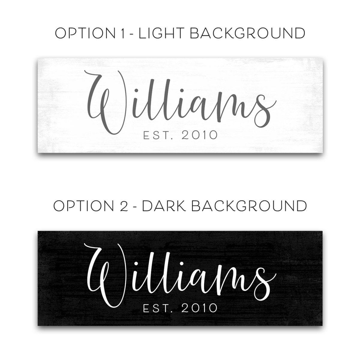 Personalized family established name signs on premium quality canvas, professionally designed by Pretty Perfect Studio. Receive your art proof in 24 hours or less!