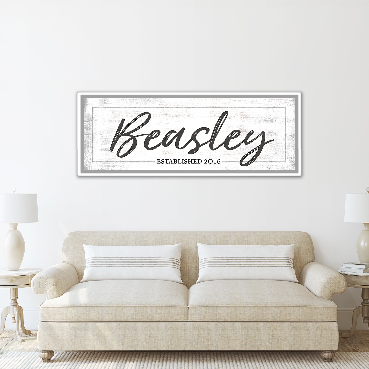 Customized established family name sign on premium quality canvas, professionally designed by Pretty Perfect Studio. Receive your art proof in 24 hours or less!