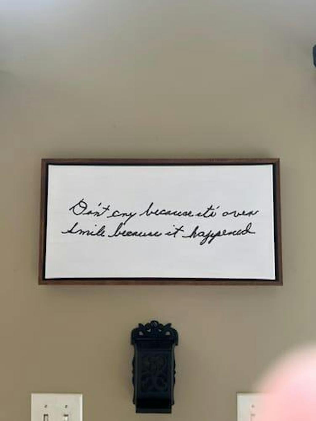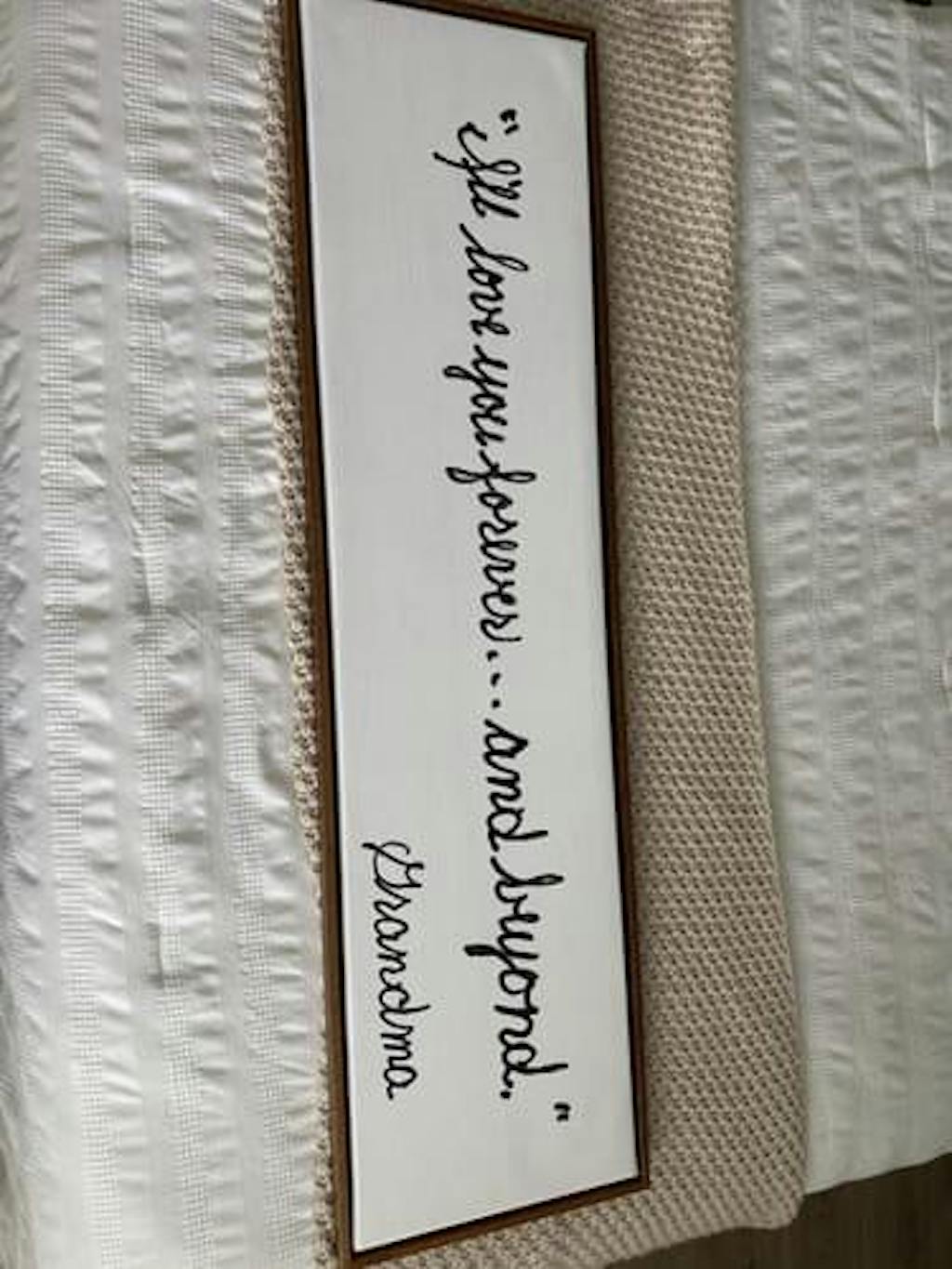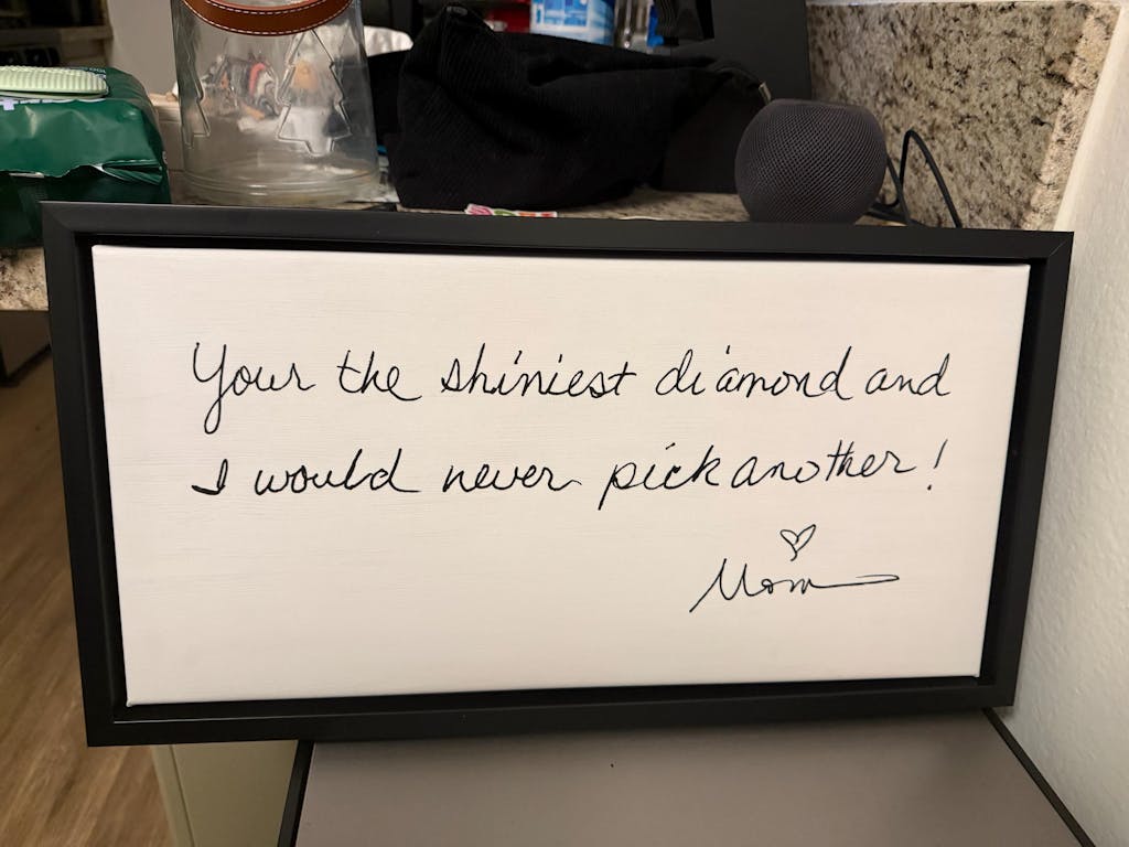 I absolutely love my item. It's a sentence from a letter from my mom, she passed away a couple years ago and to see her handwriting so big warms my heart. 10/10