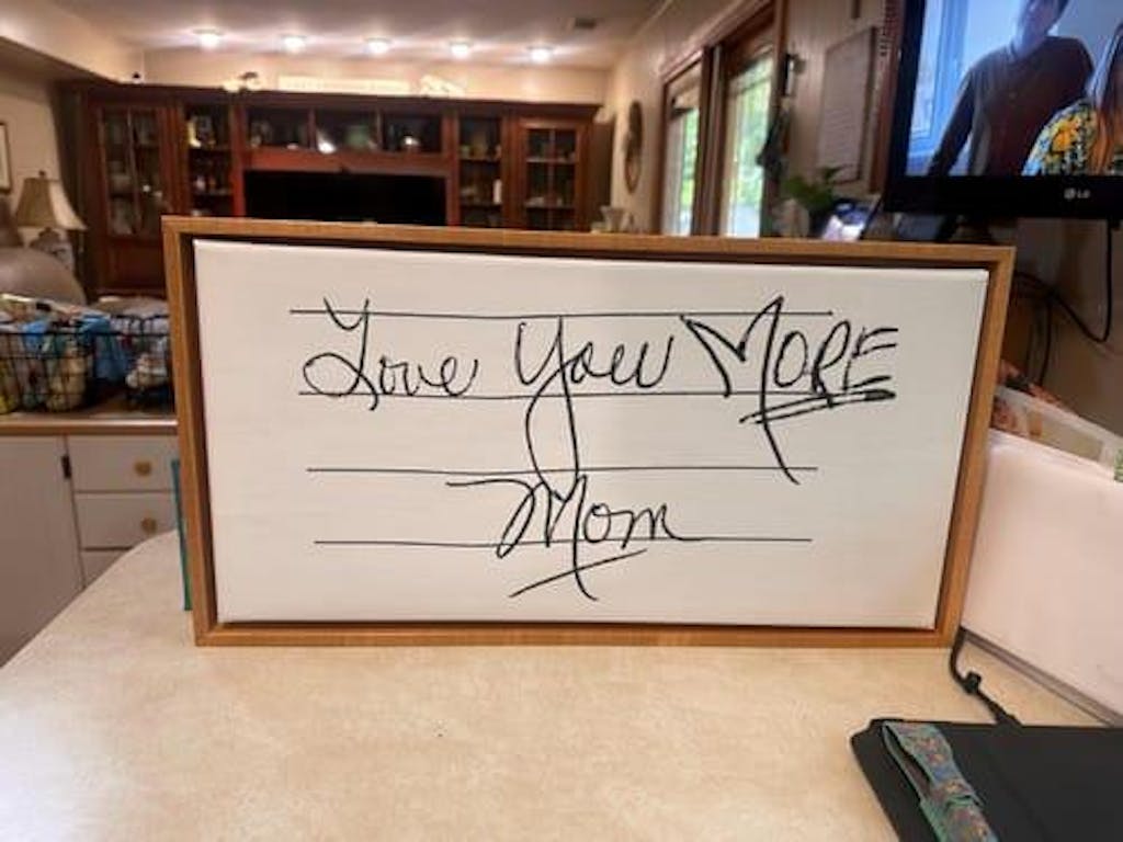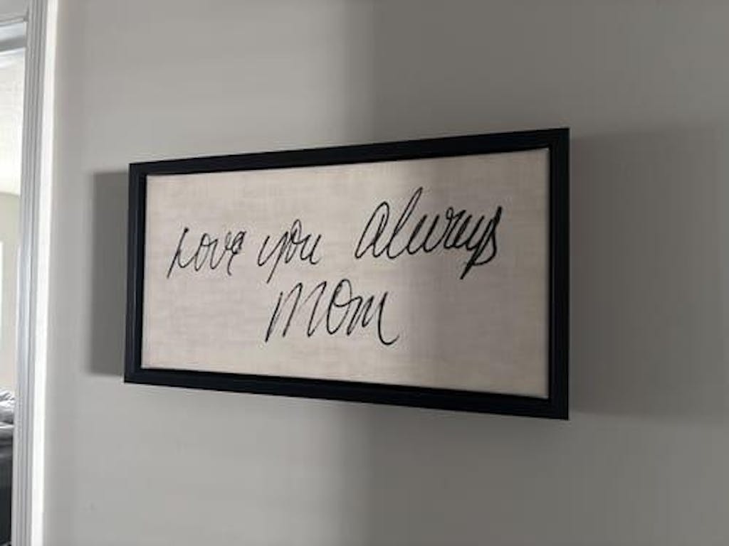 First of all they were very fast in responding to my order inquiry. The designers did an amazing job fitting my grandmothers note to the canvas. I loved how many different canvas and frame options there were to pick from. And best of all, I thought I'd have to wait over a week or more for it to arrive. From order, consultation and shipping the entire thing got here in less than a week! I was blown away how fast they responded, created my piece and shipped it! It arrived exactly as, if not better than I imagined. Needless to say it made a beautiful Mother's Day gift and brought a tear to my mom's eye. Highly recommend.