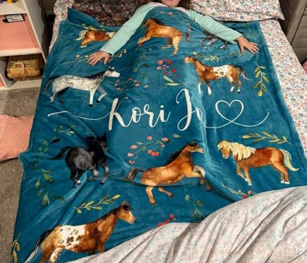 Personalized Horse Baby Blanket Gifts For Girls, Floral Horse Custom Baby Blanket
