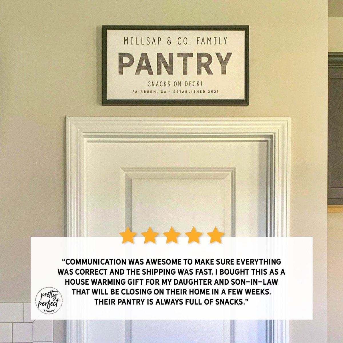 Personalized pantry with name and established date signs on premium quality canvas, professionally designed by Pretty Perfect Studio. Receive your art proof in 24 hours or less!